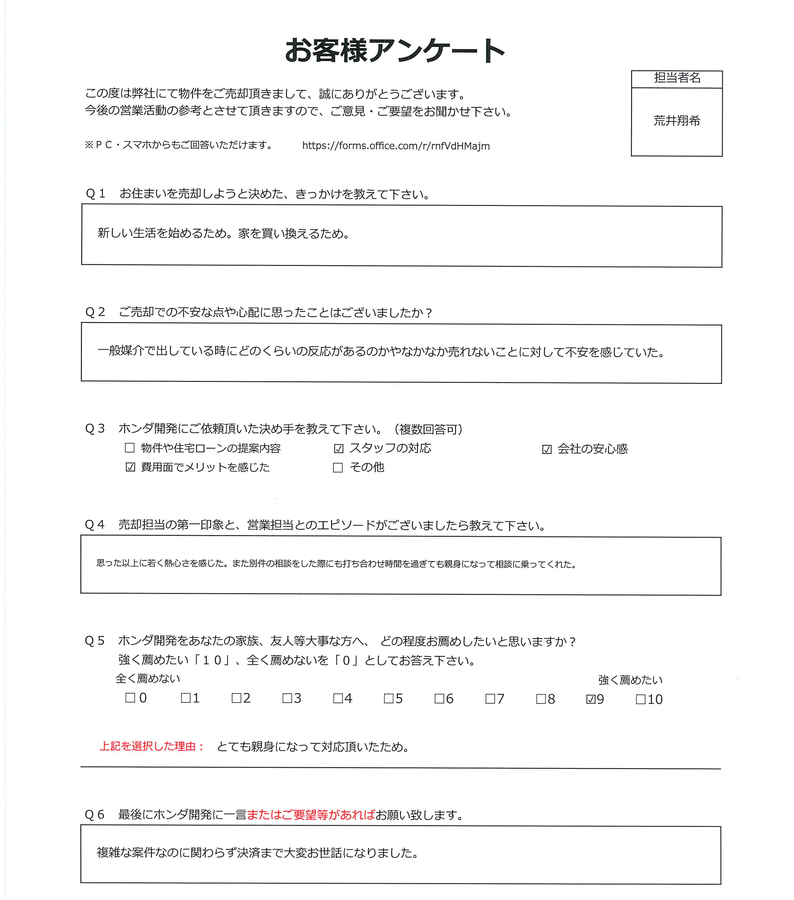 複雑な案件なのにかかわらず、決済まで大変お世話になりました。